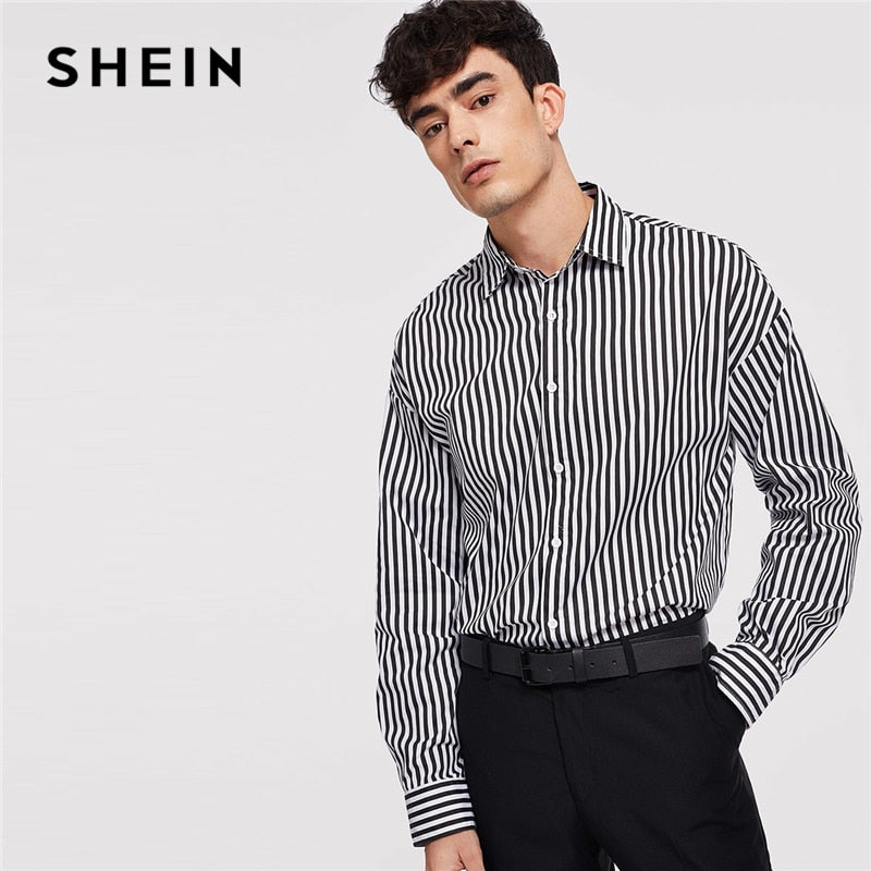 • SHEIN Men Black and White Button & Pocket Front Plaid Button Long Sleeve Pocket Placket Shirt Autumn Minimalist Mens Shirts