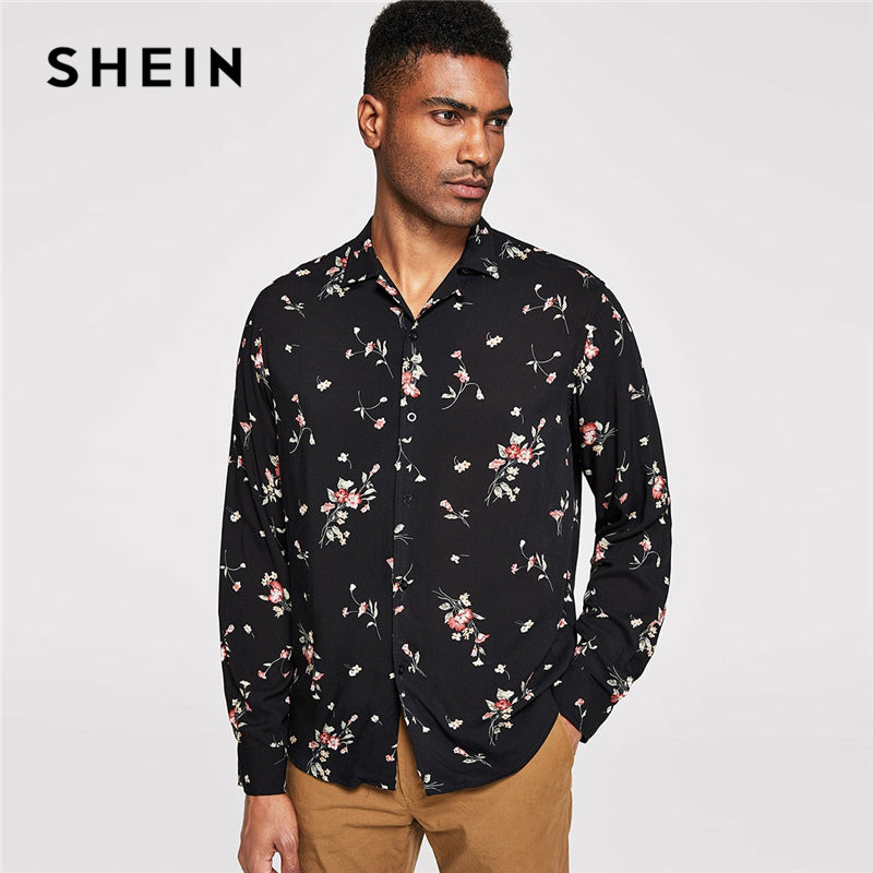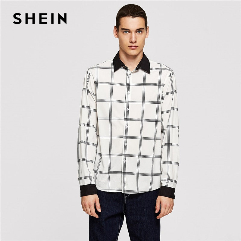 SHEIN Black And White Minimalist Button Front Striped Long Sleeve Shirt Autumn Business And Leisure Mens Shirts And Tops